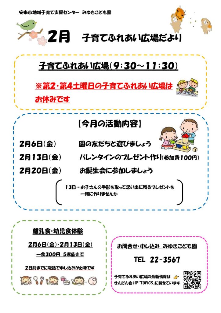 2月の子育てふれあい広場は金曜日のみとなっております。大好きな人にバレンタインのプレゼント作りをして楽しみませんか?? ぜひ、お越し下さい☆